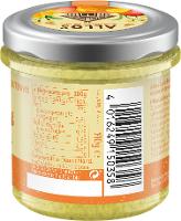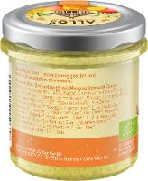 Mangopüree* (25%), Rapsöl*, Orangensaft ausOrangensaftkonzentrat*, Sonnenblumenkerne*,Wasser, Zitronensaft aus Zitronensaftkonzentrat*,Agavendicksaft*, Kokosmilch* (Kokosnussfleisch*, Wasser), Currypulver*(1,5%) (Koriander*, Kurkuma*, Fenchel*, Bockshornklee*,Kümmel*, Ingwer*, Zwiebel*, Paprika*,Knoblauch*, Zimt*, Chili*), Meersalz, Obstessig*,Eiweißpulver aus Sonnenblumenkernen*,Tapiokastärke*,weißer Pfeffer*, Chilipulver*.| Energie | Fett | gesättigte Fettsäuren | Kohlenhydrate | Zucker | Ballaststoffe | Eiweiss | Salz |