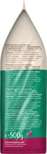 HAFERVOLLKORNFLOCKEN*(44%), WEIZENVOLLKORNFLOCKEN* (15%), DINKELVOLLKORNFLOCKEN* (12%) (eine WEIZENART), Datteln* (10%), Rosinen* (10%), WEIZENVOLLKORNFLAKES* geröstet (3,5%), CASHEWKERNE* (2%), Sonnenblumenkerne*, Fruchtmischung* gefriergetrocknet (1,5%) (in veränderlichen Gewichtsanteilen: schwarze Johannisbeeren*, Erdbeeren*, Cranberrys*), Reismehl*, Sonnenblumenöl*.| Energie | Fett | gesättigte Fettsäuren | Kohlenhydrate | Zucker | Ballaststoffe | Eiweiss | Salz |