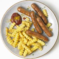 90% Schweinefleisch*, Trinkwasser, Meersalz, Gewürze* (Ingwer*, Majoran*, Nelke*, Koriander*, Kümmel*, Petersilie*, Pfeffer*), Dextrose*, Schafsaitling .| Energie | Fett | gesättigte Fettsäuren | Kohlenhydrate | Zucker | Eiweiss | Salz |