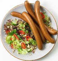 Die Rinder-Wiener werden aus 100 % Bio-Rindfleisch hergestellt. Sie enthalten neben einem hohen Fleischanteil wertvolles Sonnenblumenöl. Die feine Gewürzmischung verleiht ihnen einen würzigen Geschmack. Sie sind ideal für alle, die kein Schweinefleisch essen möchten.