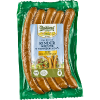 Die Ökoland Rinder-Wiener schmecken als Heißwürstchen zu Salaten, im Eintopf oder klassisch mit Senf im Brötchen.Tipp: zum Öffnen der Packung oberen Zackenrand einreißen.