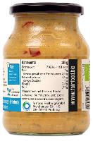 Zitronendirektsaft*, rote Linsen* 2,5%, Kokosblütenzucker*, Knoblauch*, Salz, SOJASOßE* 0,8% (Wasser, SOJABOHNEN*, Salz), Currypulver* (enthält SENFKÖRNER), Kurkuma*, Ingwer*, Pfeffer schwarz*,