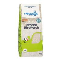 Der Risottoreis Arborio in bester demeter-Qualität wird nach der Ernte gereinigt und geschält. Danach wird das so genannte Silberhäutchen, welches das Reiskorn umschließt, schonend abpoliert. Der Arborio ist die bekannteste und am häufigsten verwendete Risotto-Reissorte. Arborio ist ein Mittelkornreis, das Korn wird etwa 7 mm lang und ist damit das größte Korn unter den italienischen Reissorten, mit einer eher rundlichen Form.  Er kann das Fünffache an Flüssigkeit aufnehmen. Der hohe Stärkegehalt sorgt dafür, dass der Reis schön cremig wird und die Körner zusammenkleben. Die Sorte Arborio sorgt für ein schön sämiges Risotto mit einem feinen Biss.   Der demeter-Reis wird in Norditalien, in der Lombardei, angebaut. Die Partnerschaft entstand bereits in den 80er Jahren zwischen dem Seniorchef der Spielberger Mühle Hans Spielberger und Senior Marsinari und wird heute von der nächsten Generation weitergeführt. Das Besondere dabei ist nicht nur die langjährige Partnerschaft auf Augenhöhe, sondern auch die Anbaumethode. Diese ist für Italien einzigartig und ähnelt der in Asien üblichen Weise. Dabei werden die Reispflanzen im Gewächshaus vorgezogen und nach einigen Tagen in Reihen direkt in die Beete gepflanzt und dann mit Quellwasser aus den Bergen geflutet. Der Vorteil: Das Unkraut kann den Reispflanzen nicht so leicht Konkurrenz machen. Gleichzeitig zeigt sich aber nach einigen Jahren Praxisanwendung, dass auch die Ökologie profitiert: Da zwischen den Reihen freie Wasserflächen stehen bleiben, gibt es in der Region heute wieder Vogelarten, die über lange Jahre nicht mehr zu sehen waren.    Sowohl der Anbau, als auch die Verpackung steht für Nachhaltigkeit. Sie basiert zu 100% auf dem nachwachsenden Rohstoff Holz. Sie können vollständig im Altpapier gesammelt und zu 100% recycelt werden. Durch eine dauerhafte Partnerschaft mit dem Bergwaldprojekt e.V. finanziert die Spielberger Mühle jedes Jahr das Pflanzen von Bäumen sowie die Pflege und den Erhalt des bestehenden Waldes. Letzteres ermöglicht dem Wald, sich auf natürliche Art zu verjüngen - das heißt neue Bäume wachsen und der Wald gedeiht. Damit wird der Papierkreislauf geschlossen, indem der Papierverbrauch für die Verpackungen ausgeglichen und der Natur etwas zurückgegeben wird.