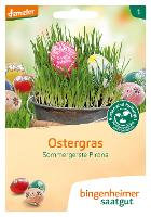 Traditionell zu Ostern macht sich dieses saftig-grüne Gras besonders schön als Dekoration für Osternester. Bei Zimmertemperatur braucht das Gras 7 - 10 Tage bis es eine schöne Wuchshöhe erreicht. Ausgesät wird in Schalen, am besten an einem warmen, hellen Platz. Die Samen auf die Erde geben, andrücken und mit 1 cm Erde bedecken. Bis zur Keimung feucht halten"TIPP": Ihr Ostergras gedeiht in jedem Gefäß, besonders nett sieht es in Keramiktöpfen aus. Das Ostergras können Sie anschließend an den Osterhasen und andere Haustiere verfüttern.