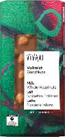 Roh-Rohrzucker*, HASELNÜSSE* (26%), Kakaobutter*, VollMILCHpulver*, Kakaomasse*, SAHNEpulver*, MagerMILCHpulver*, Bourbon Vanilleextrakt*.Kakao: