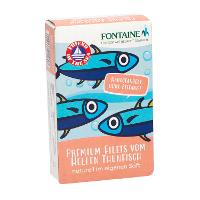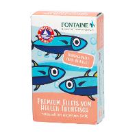 Fontaine Heller Thunfisch wird nach den Richtlinien der Nachhaltigkeit einzeln mit der Angelrute aus dem Wasser gezogen. Nach dem Handangelfang folgen die verantwortungsvolle Verarbeitung und die Verfeinerung mit besten Bio-Zutaten. Diese Vollkonserve enthält neben dem Thunfisch ausschließlich Wasser und Meersalz.