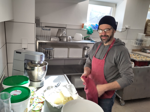Halt! Eier aufschlagen für die Mandelhörnchen für die Ökokisten-Kollegen und fürs Freiburger Ape-Café nicht vergessen!